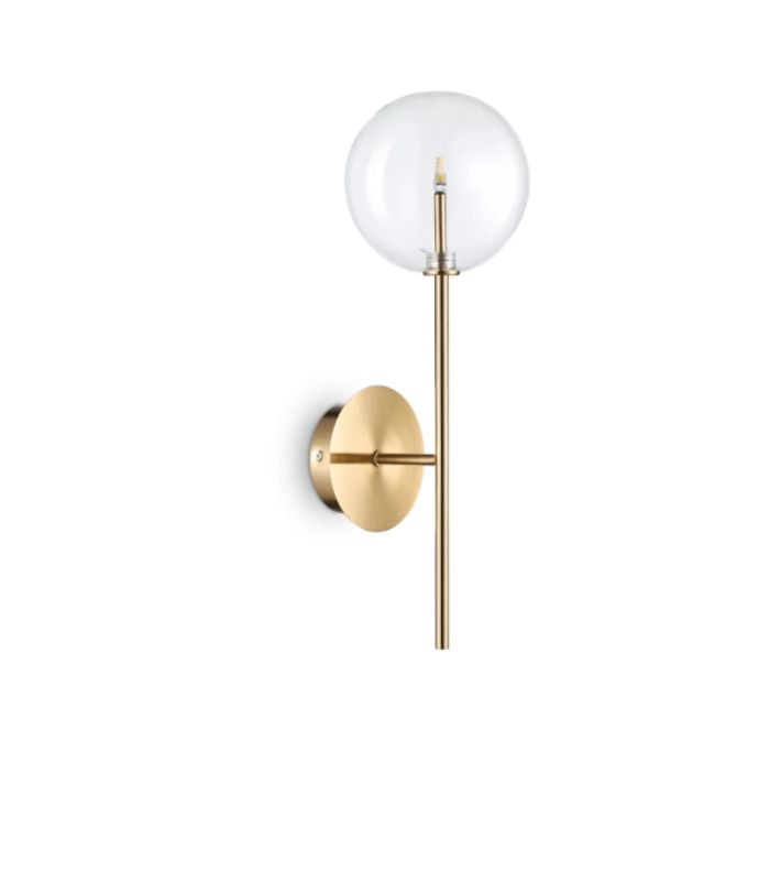 Aplica Ideal Lux Equinoxe SP1 — 1 × E27, structură metalică și glob din sticlă, design modern ideal pentru living, dormitor sau hol.