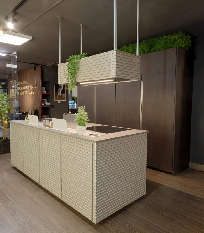 Mobilă de bucătărie italiană de lux, adusă direct Salone del Mobile di Milano — acum disponibilă în stoc la prețuri reduse semnificativ față de valoarea de catalog.