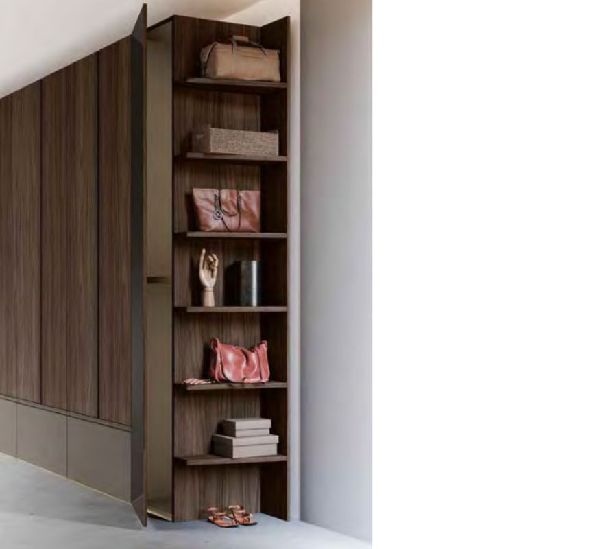 Compoziția cupinde polițe pentru haine impachetate si bară umerașe si rafturi laterale. La cerere se pot adăuga accesorii sau module suplimentare.