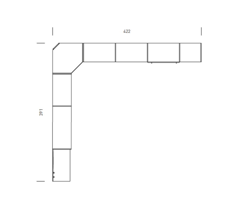 Dimensiuni – L391/422 x h 234 x p55 cm.