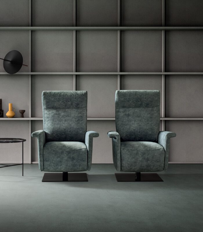 Fluf Relax High oferă spătar înalt și confort sporit, cu opțiunea de bază girevolă și tetieră — ideal pentru momente de relaxare îndelungată.