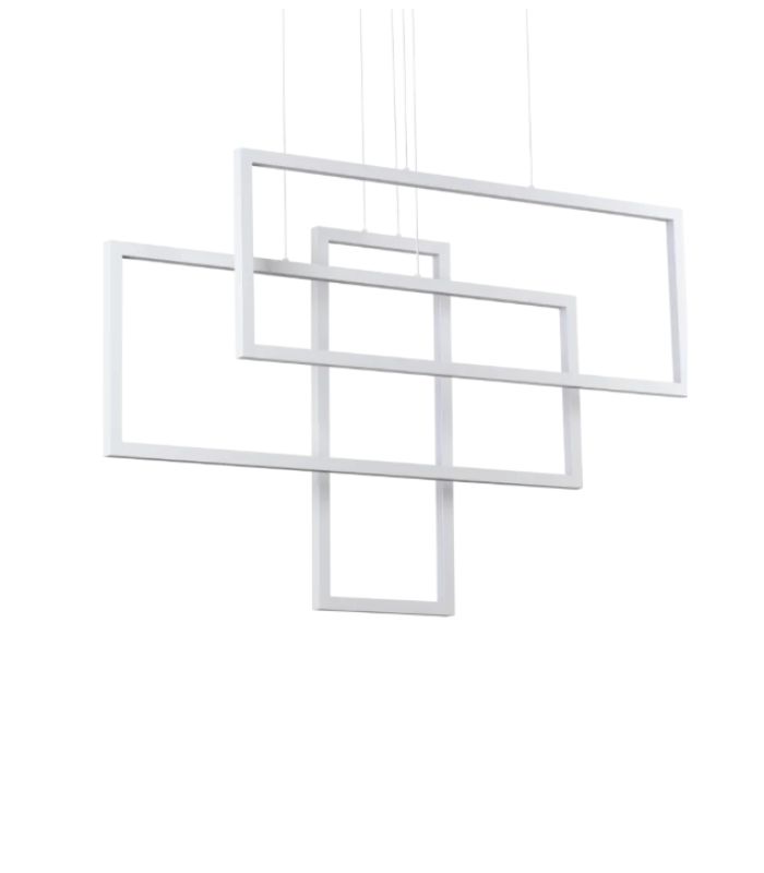 Suspensie modernă Ideal Lux Frame SP Rettangolo— 102.5 cm, adâncime 13 cm, structură metalică alb/negru mat și difuzor opal; lumină directă, înălțime reglabilă 80–249 cm, ideală pentru living, dining sau bucătărie.