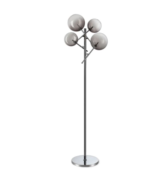 Lampadar Ideal Lux Equinoxe PT4 — 4 × E14, structură metalică și globuri din sticlă ; iluminare modernă pentru living, dormitor sau birou.