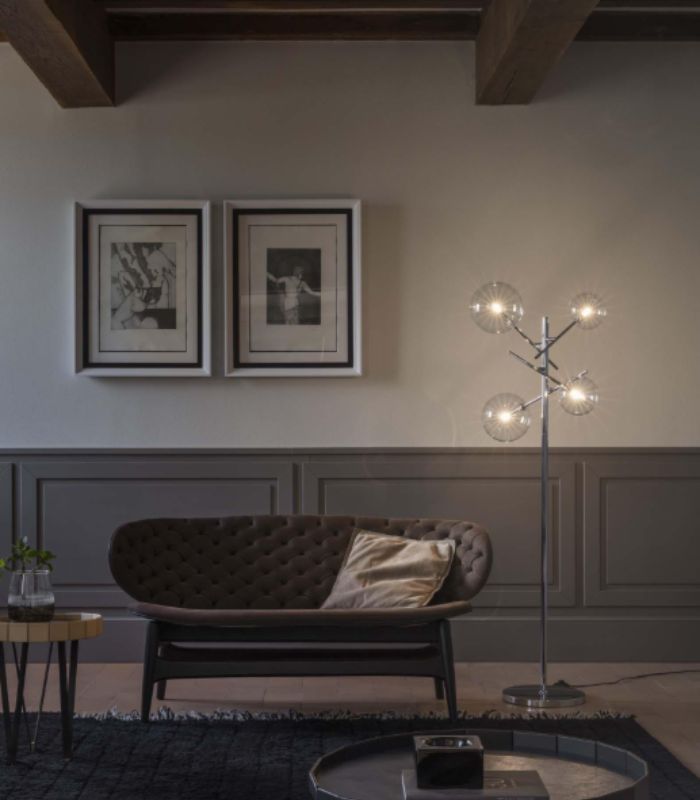 Echipat cu 4 surse de lumină E14, Equinoxe PT4 oferă iluminare ambientală plăcută, ideală pentru living, dormitor, bibliotecă, colț de lectură sau spații comerciale elegante. Structura robustă și baza stabilă îl fac ușor de integrat în zonele de trafic, iar finisajele variabile permit adaptarea la diverse stiluri cromatice.