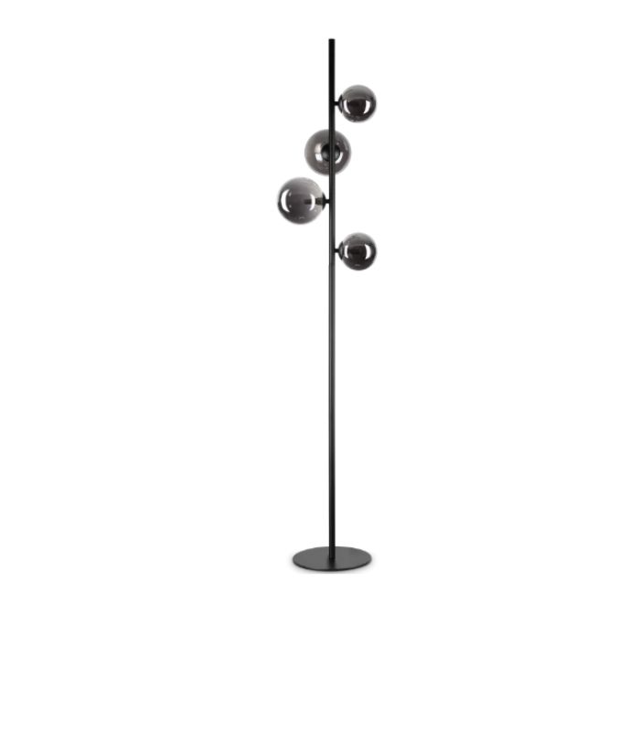 Lampadarul Perlage PT4 Ambra combină o montură metalică elegantă cu difuzoare din sticlă suflată, oferind un corp de iluminat rafinat și funcțional pentru interior. Dimensiunile sunt L 32 cm × H 164 cm × adâncime 29,5 cm.