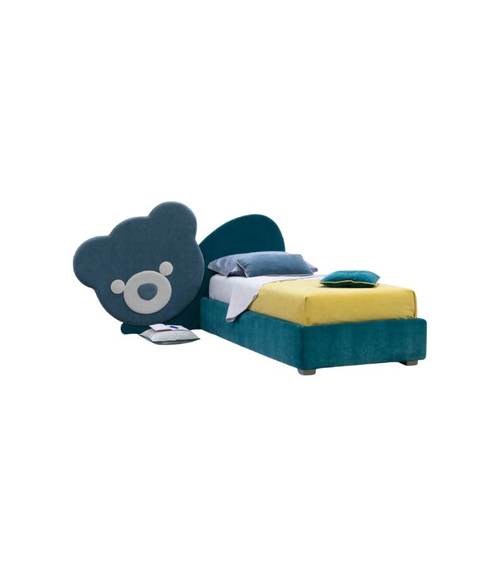 Patul pentru copii Ted: format dintr-un panou in forma de ursulet sau inima care se fixeaza pe perete. Este atasat de un pat ce poate fi echipat cu lada de depozitare, transformand camera intr-un loc magic, plin de poveste. Culorile, atat ale panourilor, cat si ale patului pot fi personalizate cu materiale textile.