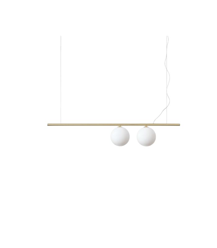 Suspensie Perline SP2 — 2 × G9, metal + sticlă albă suflată, 100,5 cm lungime, înălțime reglabilă 42–220 cm — lampă suspendată elegantă, ideală pentru living, dining, bucătărie sau hol.