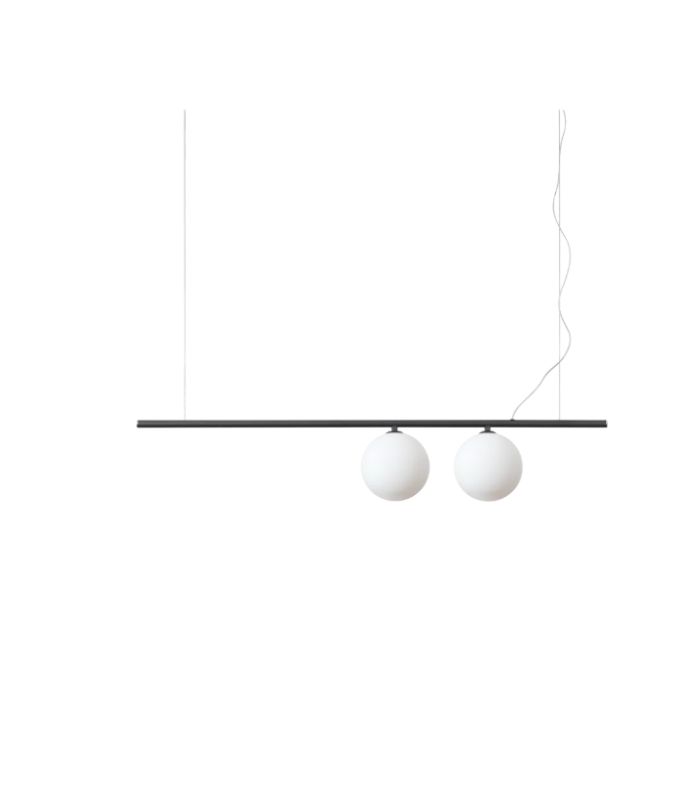 Perline SP2 este o lampă suspendată modernă de interior, cu structură metalică și difuzoare din sticlă suflată tratată acid, concepută să aducă eleganță și lumină caldă în spațiile de living, dining, bucătărie sau holuri. Cadrul metalic vine într-un finisaj negru mat (disponibil și în variante cu alamă satinată), iar globurile din sticlă albă oferă o lumină difuză și plăcută.