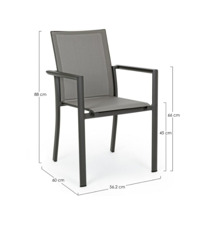 Scaunul Konnor de la Bizzotto este alegerea ideală pentru amenajări moderne de exterior. Realizat din aluminiu rezistent și textilenă durabilă, oferă confort, eleganță și rezistență în timp.