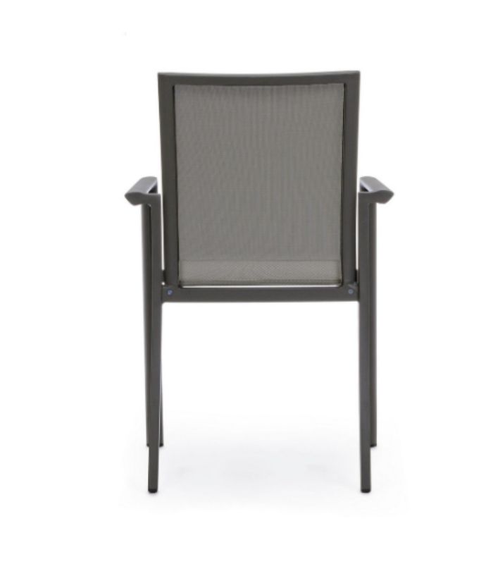 Șezutul și spătarul sunt realizate din textilenă de înaltă calitate, un material respirabil și ușor de întreținut, ideal pentru utilizare intensă în aer liber.