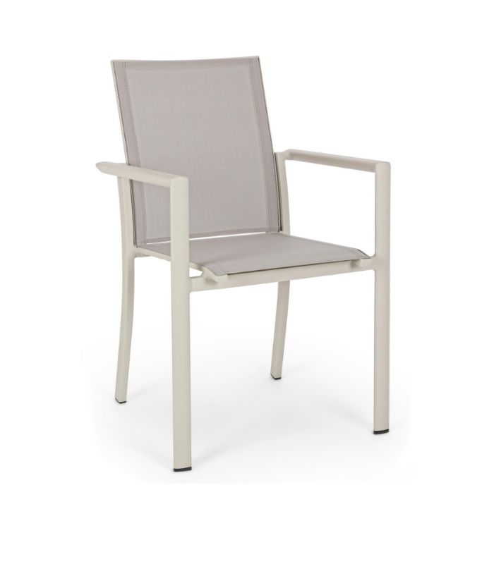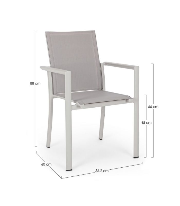 Scaunul Konnor de la Bizzotto este alegerea ideală pentru amenajări moderne de exterior. Realizat din aluminiu rezistent și textilenă durabilă, oferă confort, eleganță și rezistență în timp.