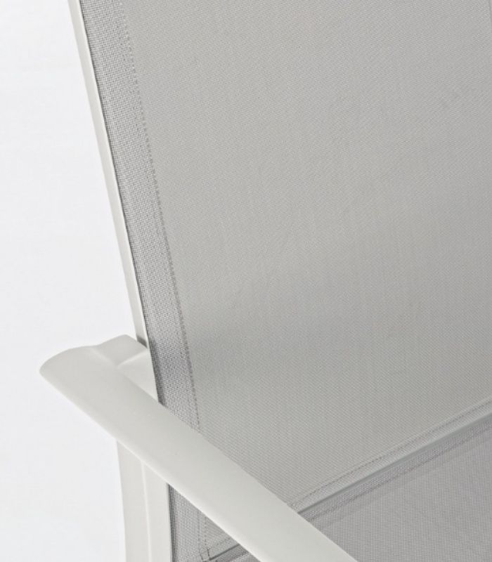 Șezutul și spătarul sunt realizate din textilenă de înaltă calitate, un material respirabil și ușor de întreținut, ideal pentru utilizare intensă în aer liber.