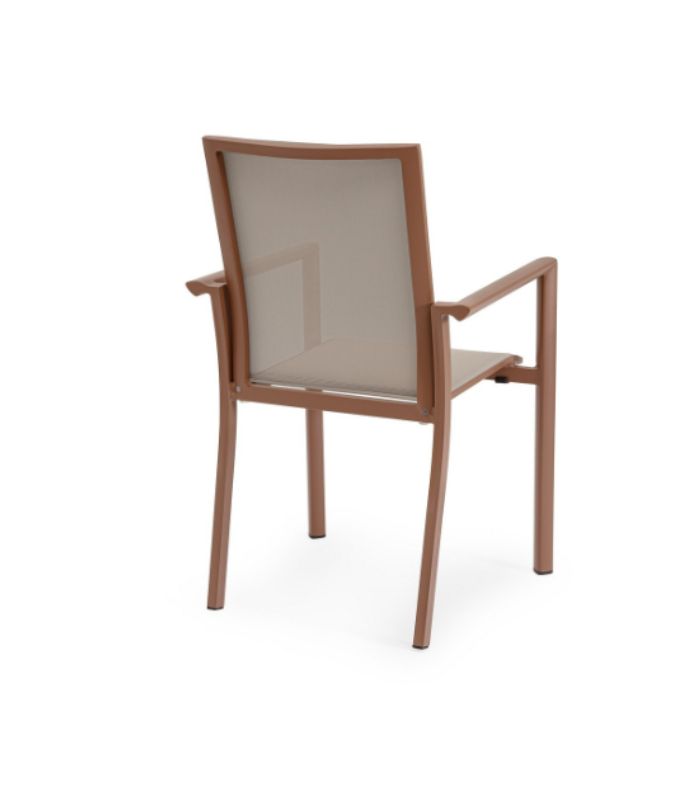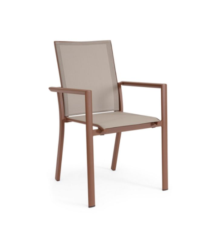 Scaunul Konnor maro combină designul minimalist cu funcționalitatea specifică mobilierului premium de exterior. Construit pe un cadru din aluminiu ușor și rezistent la coroziune, acest scaun este perfect pentru utilizarea pe terase, în grădini sau în spații HoReCa.