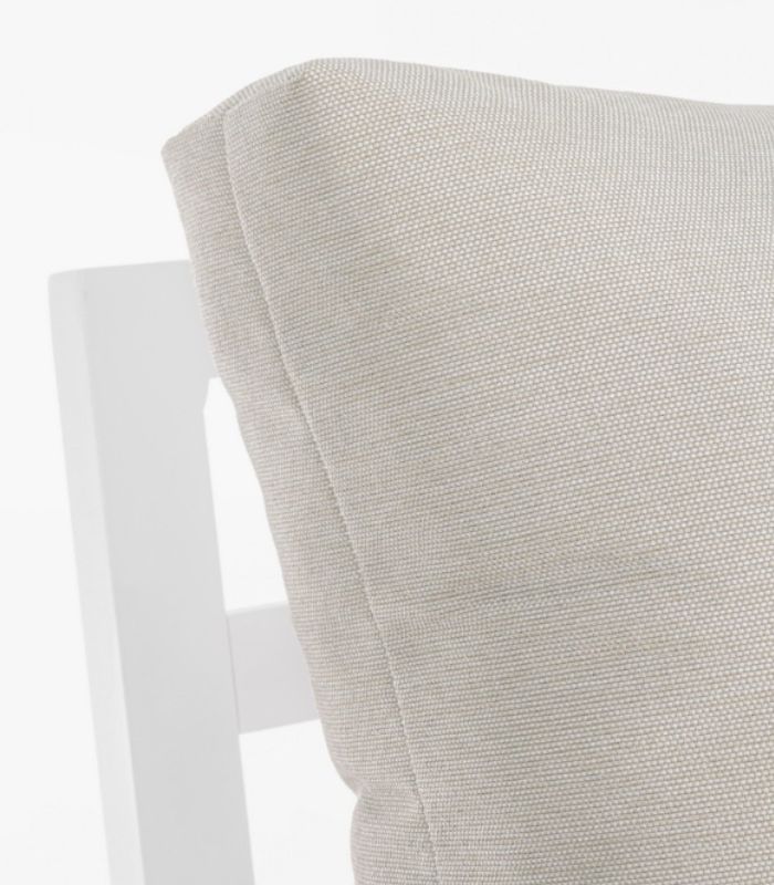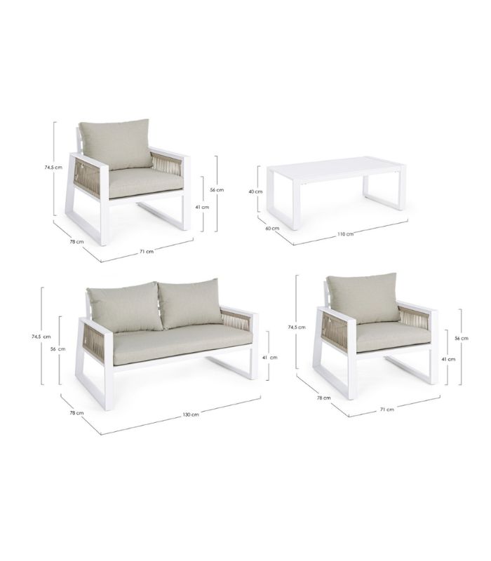 Pernele generoase, în tonuri neutre, sunt concepute pentru confort superior și sunt realizate din materiale potrivite pentru utilizare în exterior, ușor de întreținut. Setul include o canapea pentru două persoane, două fotolii și o masă de cafea, oferind un spațiu complet pentru relaxare și socializare.